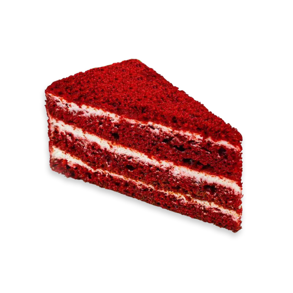 Два слоя насыщенного красного цвета классического бисквита, пропитаны сахарным сиропом прослоены сливочно-сырным сметанным кремом
