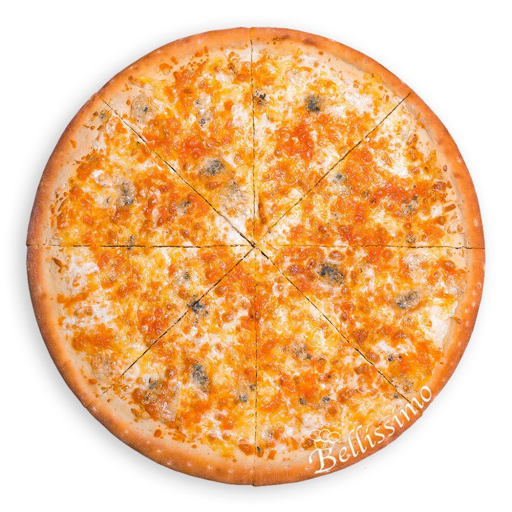 Томатный соус, сыр моцарелла, смесь сыров пармезан и чеддер, сыр блю чиз (с голубой плесенью)