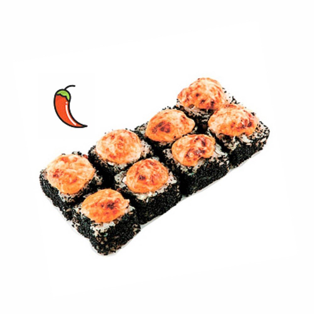 Рис, нори, угорь, лосось, сыр сливочный, масаго черная, спайси соус, соус унаги, кунжут (соевый соус, имбирь и васаби в комплекте)