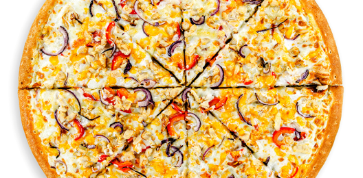 Томатный соус, сыр моцарелла, креветки, шампиньоны, соус цезарь