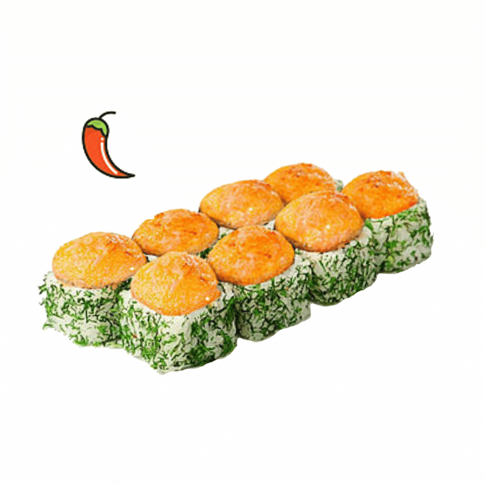 Рис, нори, огурец, сыр сливочный, лосось, спайси соус, сыр гауда, укроп (соевый соус, имбирь и васаби в комплекте) *Внешний вид блюда может отличаться от картинки