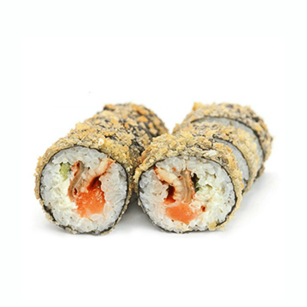 Рис, нори, японский майонез, лосось, угорь, огурец, темпура (соевый соус, имбирь и васаби в комплекте) *Внешний вид блюда может отличаться от картинки