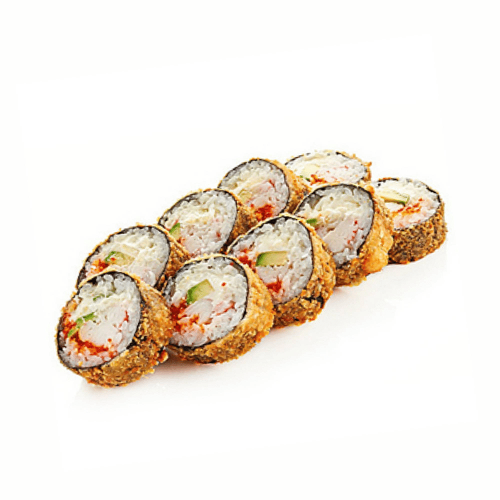 Рис, нори, мясо краба (имитация), спайси соус, перец болгарский, огурец, темпура (соевый соус, имбирь и васаби в комплекте) *Внешний вид блюда может отличаться от картинки