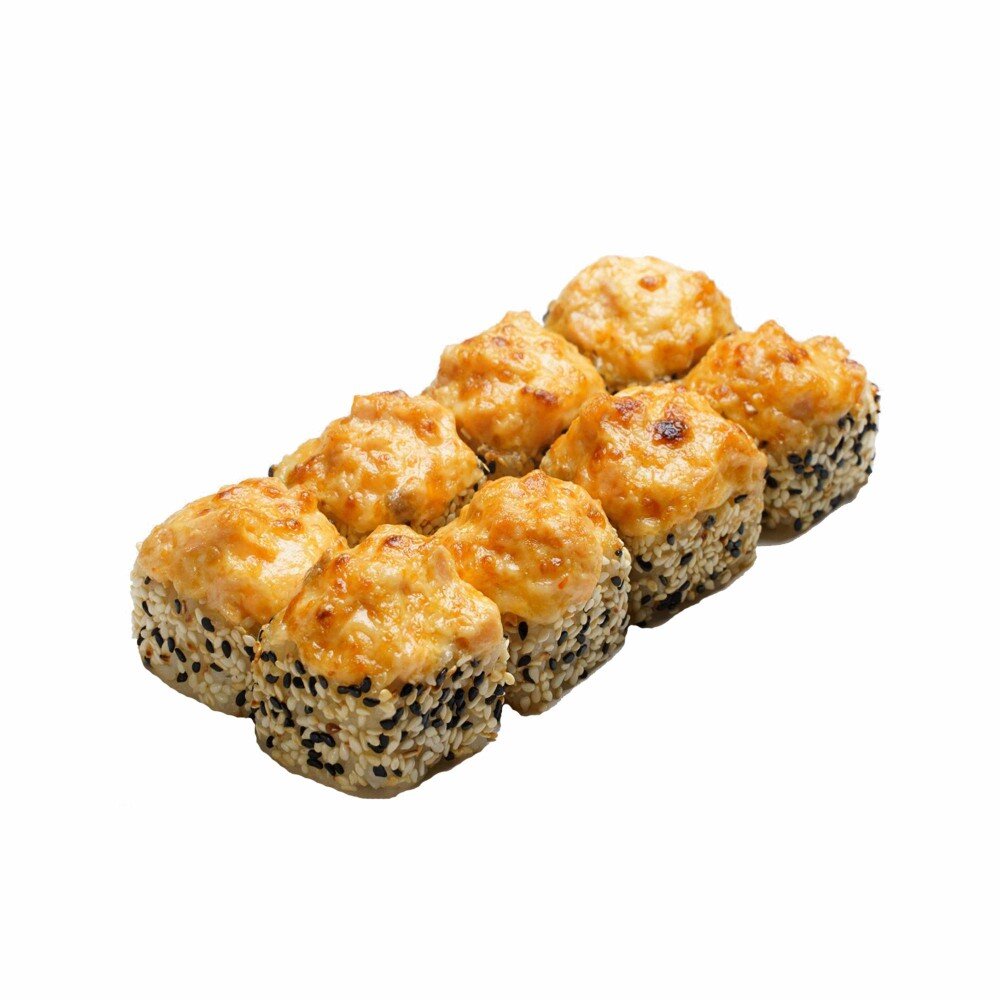 Рис, нори, сыр сливочный, курица копчёная, перец болгарский, масляная рыба, сырный соус, кунжут, сыр гауда (соевый соус, имбирь и васаби в комплекте)