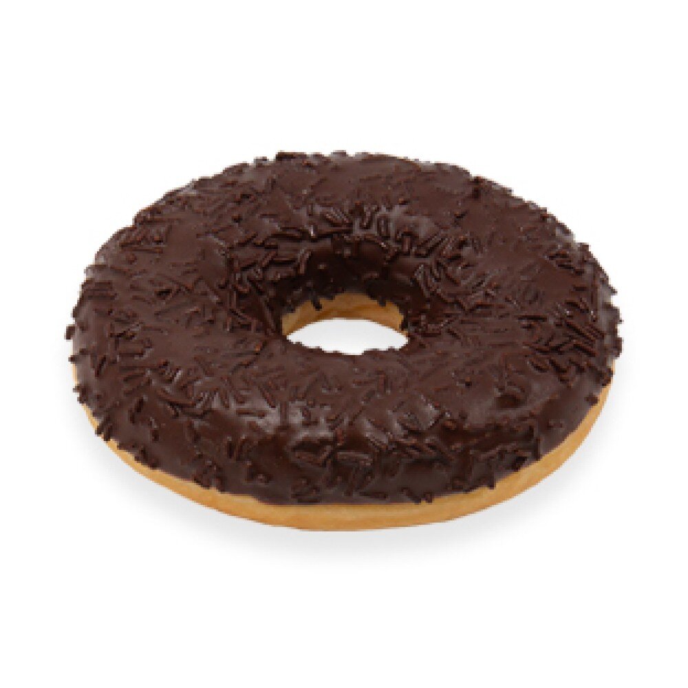 Это пончик из дрожжевого теста покрытый сверху глазурью их темного шоколада. Он имеет приятный сладкий вкус и подходит в качестве десерта к любому напитку.