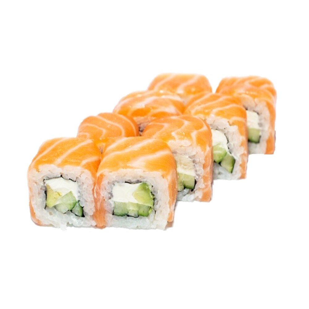 Лосось, рис, нори, огурец, сыр сливочный (соевый соус, имбирь и васаби в комплекте)