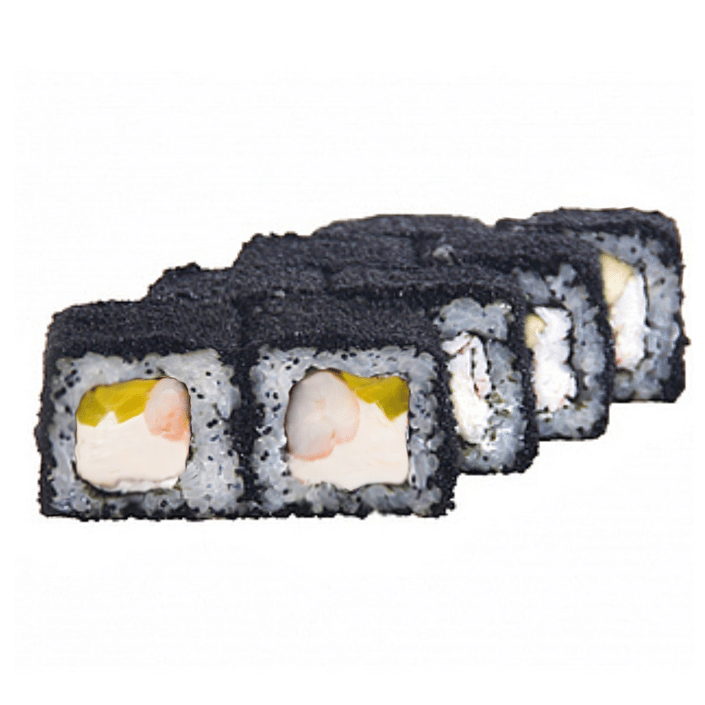 Креветка, масляная рыба, рис, нори, сыр сливочный, масаго черная (соевый соус, имбирь и васаби в комплекте) *Внешний вид блюда может отличаться от картинки
