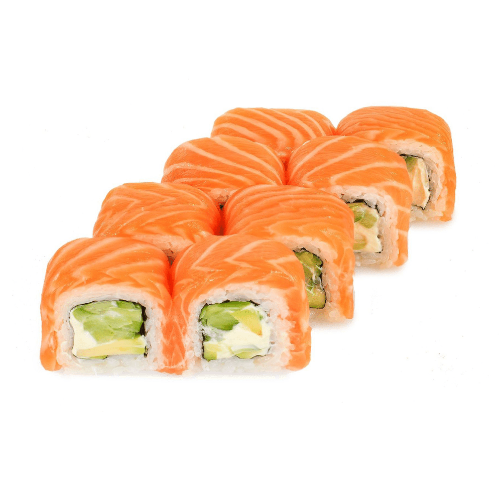 Лосось, рис, нори, огурец, авокадо, сыр сливочный (соевый соус, имбирь и васаби в комплекте) *Внешний вид блюда может отличаться от картинки