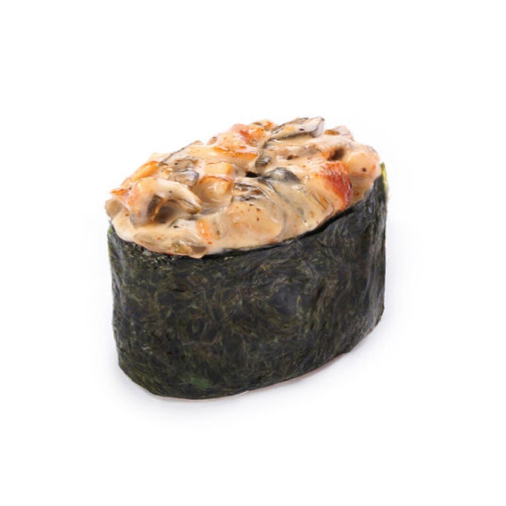 Угорь, рис, нори, спайси соус (соевый соус, имбирь и васаби в комплекте)