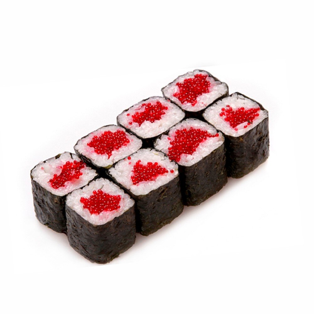 Красная масаго, рис, нори (соевый соус, имбирь и васаби в комплекте)