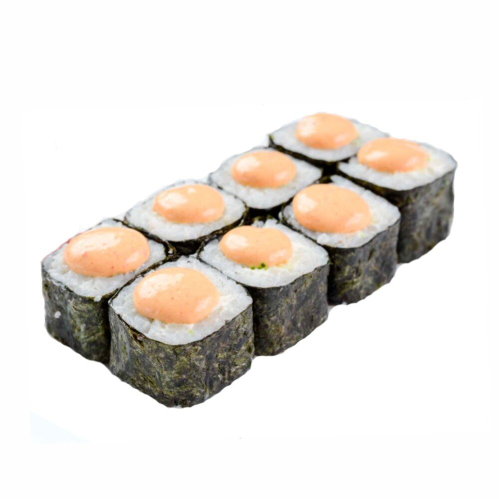 Креветка, мясо краба (имитация), рис, нори, спайси соус (соевый соус, имбирь и васаби в комплекте)